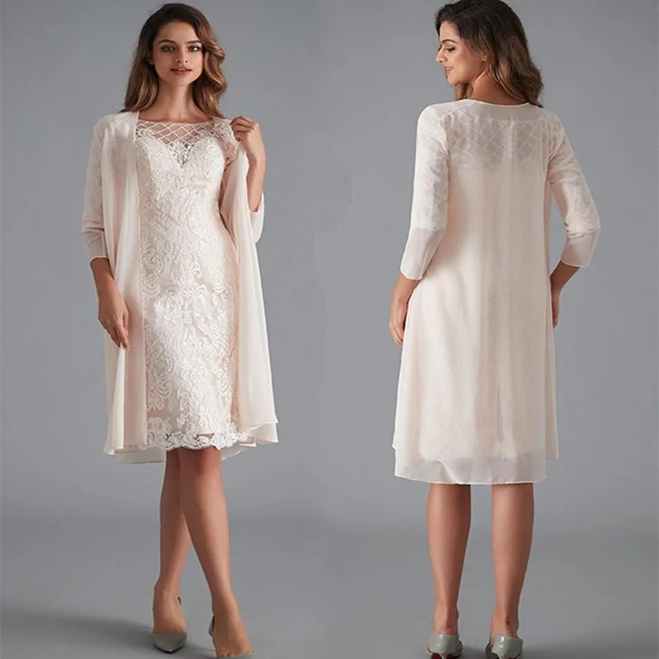 Mother of the Bride /Groom Dresses Tea Length Lace Mother of The Groom Dress with Jacket Formal Wedding Guest Gowns