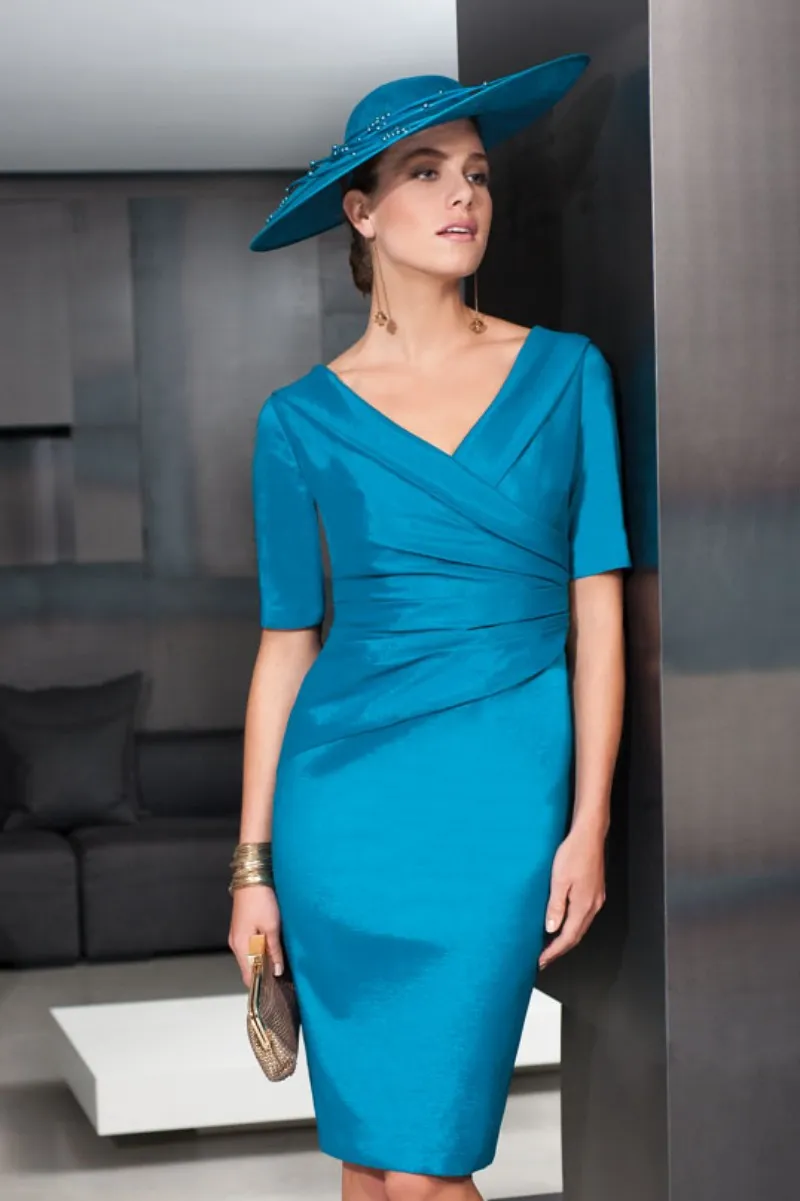 Mother of The Bride/ Groom Dress V Neck Short Sleeve Ruched Wedding Guest Dresss Knee Length Evening Gown