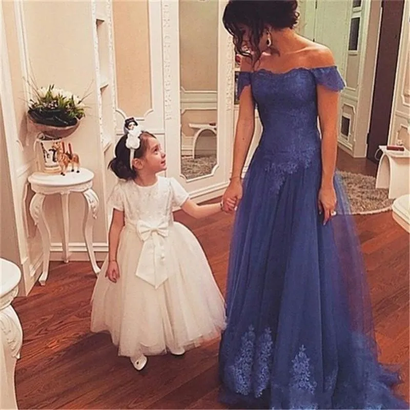 Formal Mother Bride / Groom Dresses Off Shoulder Cap Sleeves Lace Appliques Tulle Long Wedding Guest Prom Dress Evening Gowns