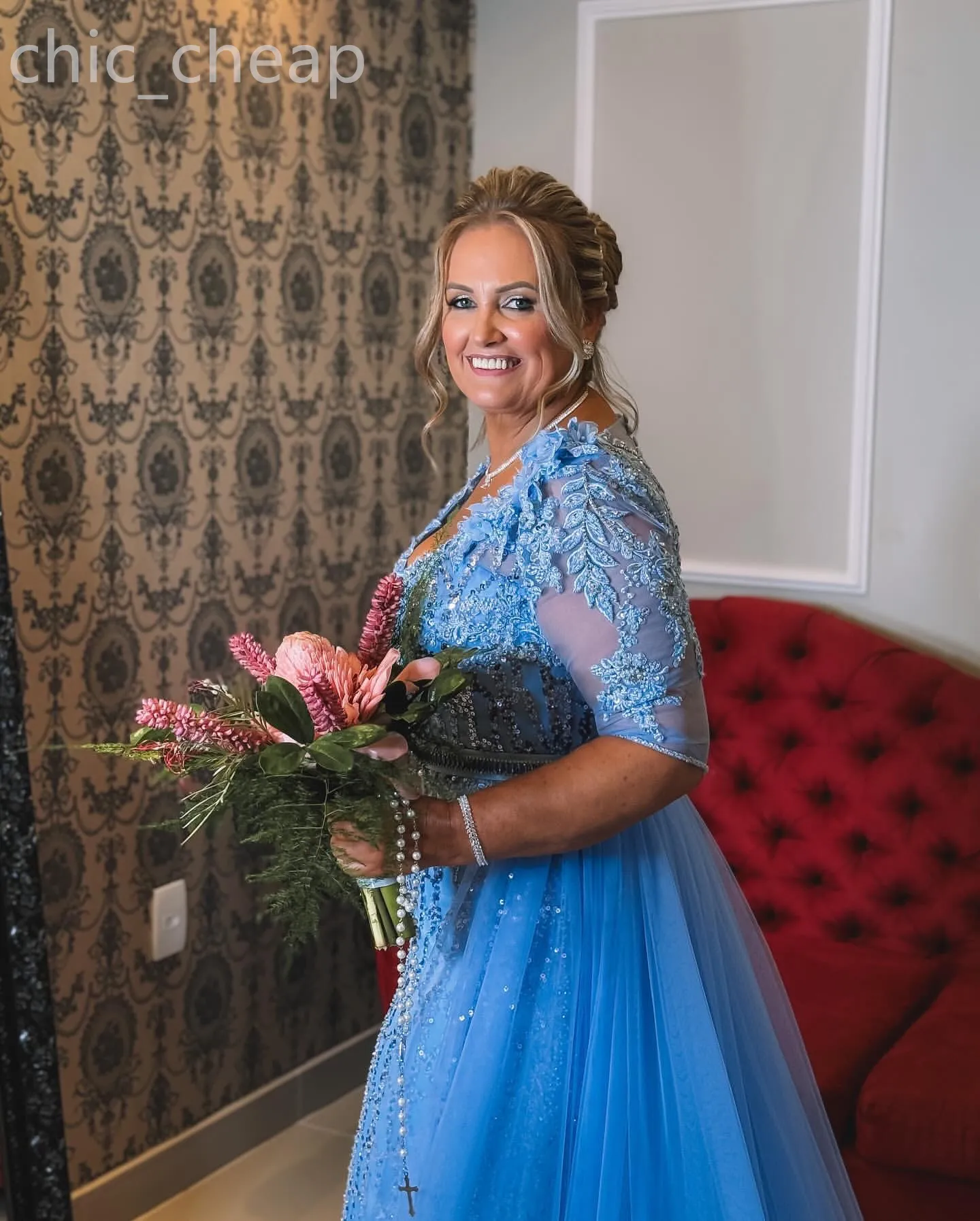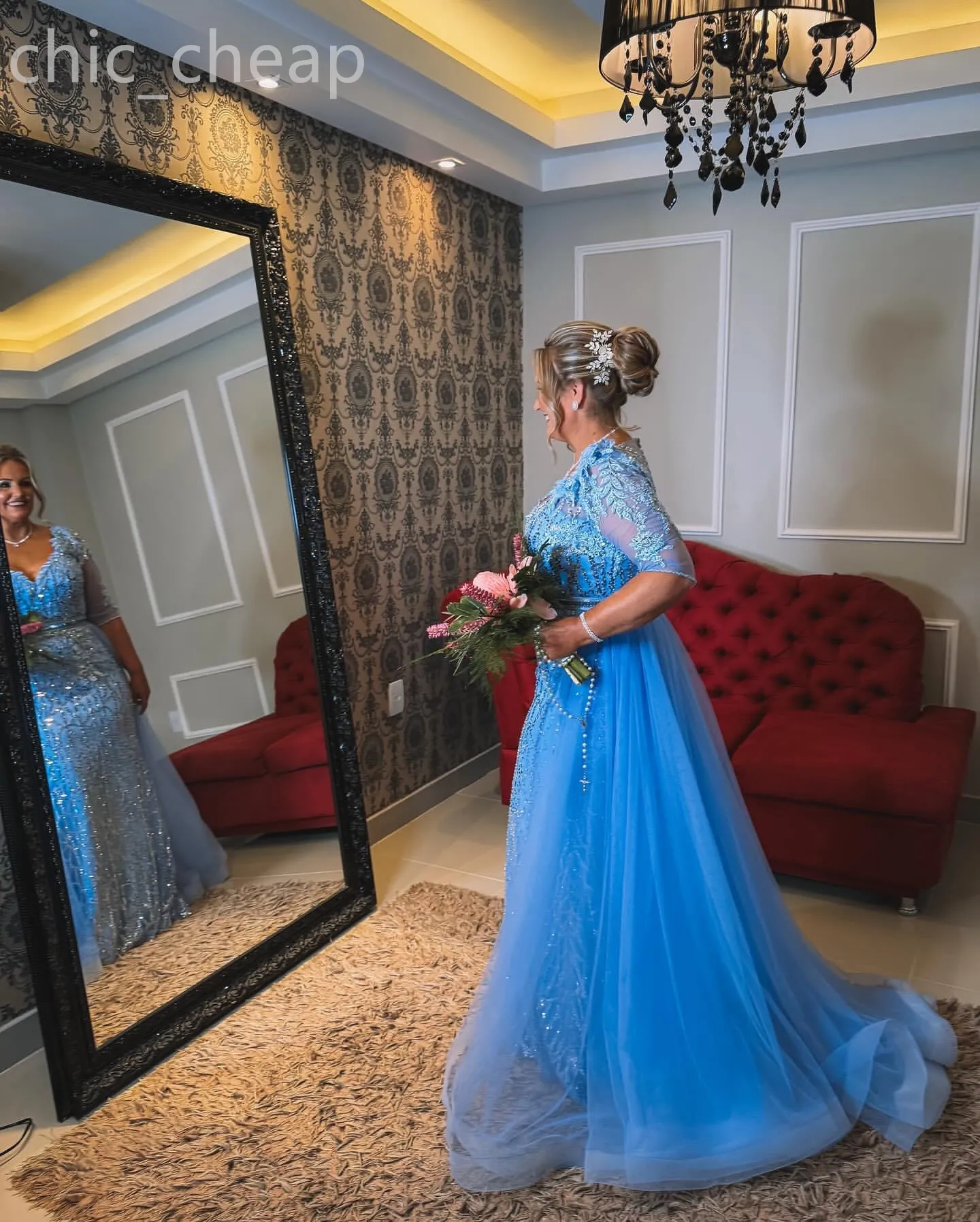 Sky Blue Mermaid The Bride /Groom Dresses Lace Beaded Evening Prom Formal Party Birthday Celebrity Mother Of Groom Gowns Dress