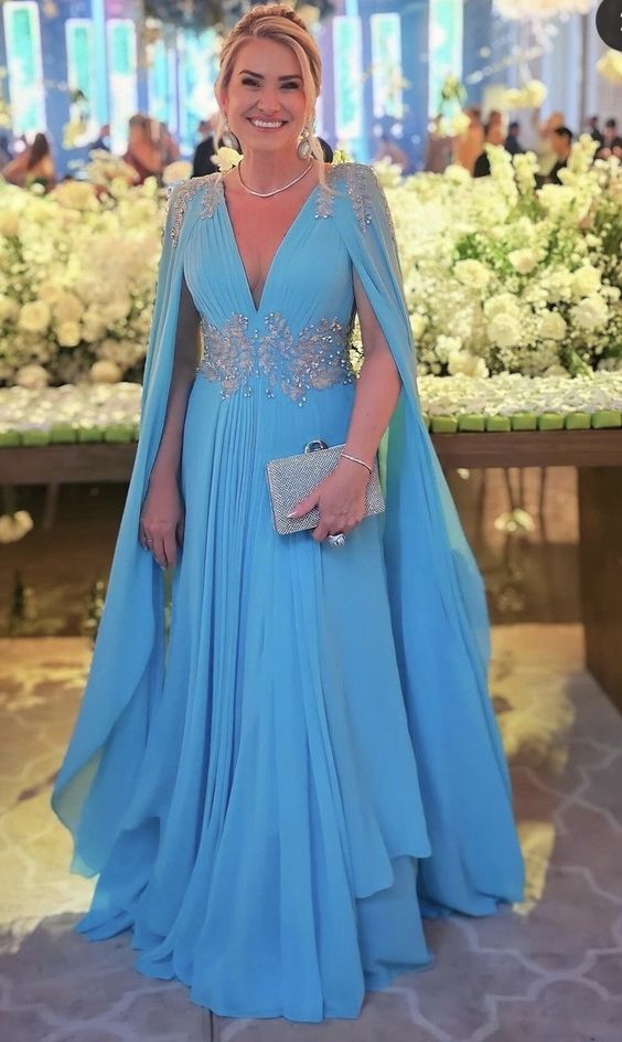 Blue Mother Of The Bride/Groom Dresses Beading Crystals Evening Gowns Wedding Guest Dress