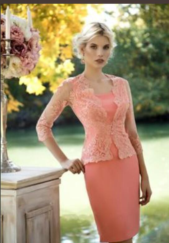 Simple Mother Of The Bride/Groom Dresses Orange Lace Tea-length Evening Gowns Wedding Guest Dress
