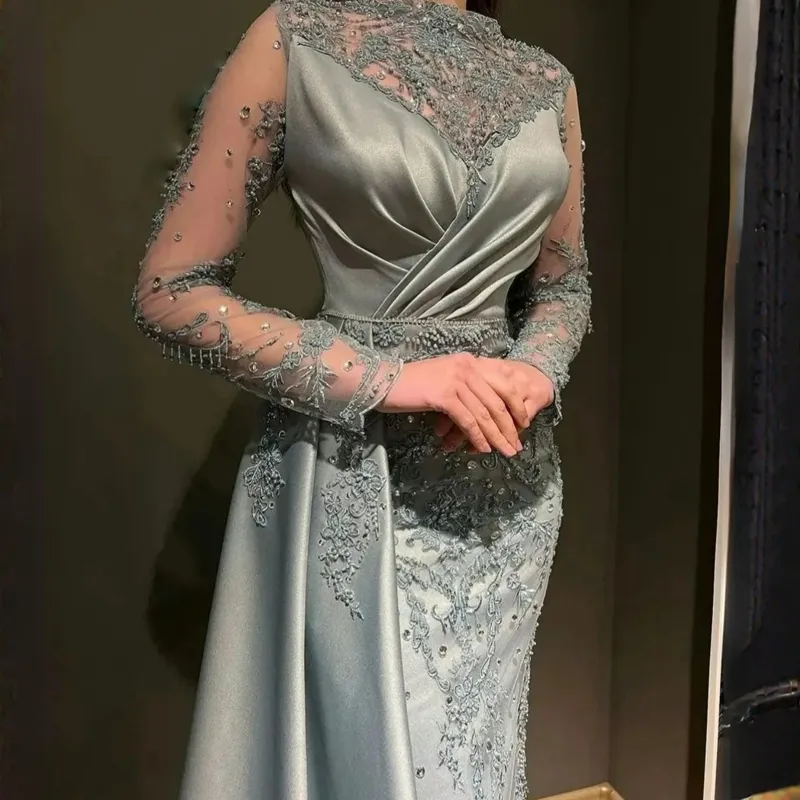 Luxurious Plus Size Modet Mother of the Bride/ Groom Dress Long Sleeve Beaded Sequined Lace Appliqued Sequin Formal Party Prom African Wear Gown