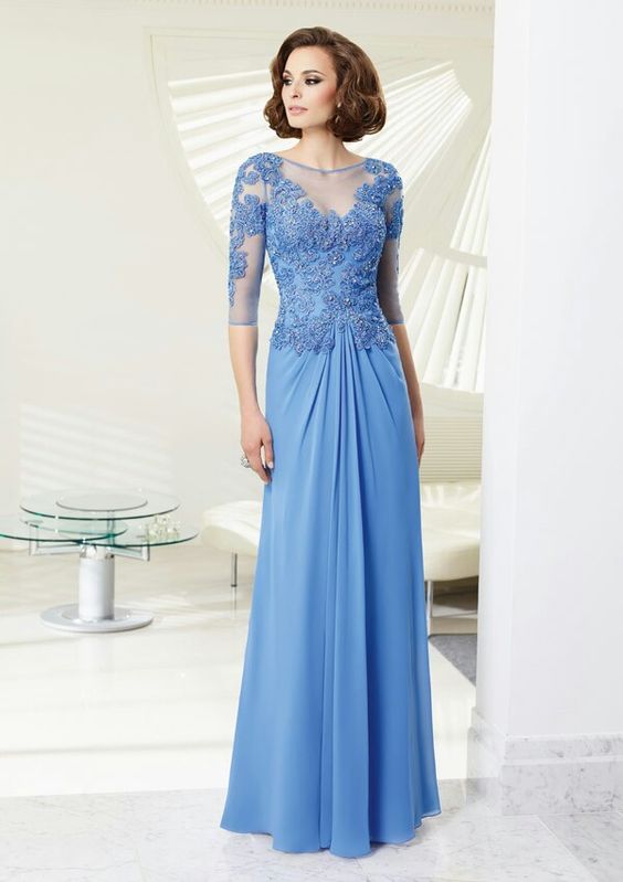 Sky Blue Mother of Bride/ Groom Dress Simple Lace Evening Formal Gowns Prom Dress