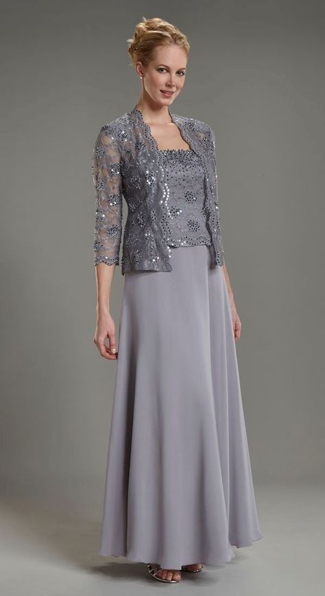 Elegant Mother of Bride/ Groom Dress Simple with Lace Jacket Evening Formal Gowns Prom Dress