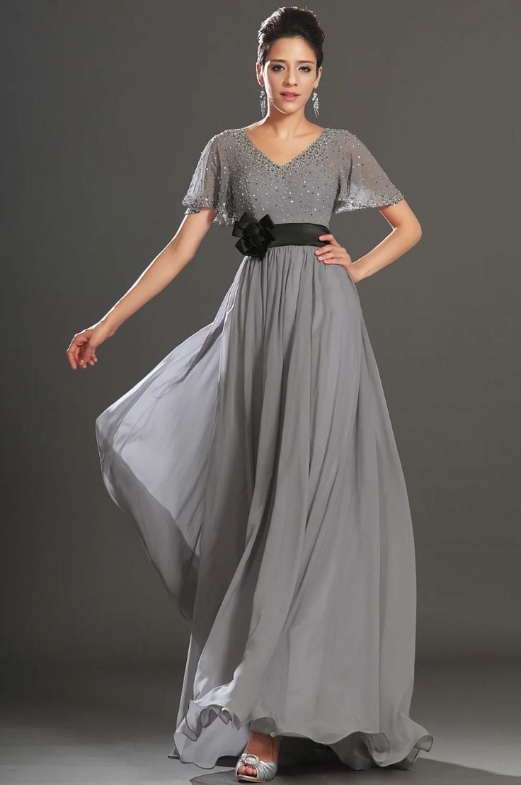 Grey Mother of Bride/ Groom Dress Simple Sequins Evening Formal Gowns Prom Dress