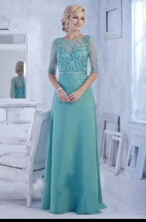 Light Blue Mother of Bride/ Groom Dress Simple Lace Appliques Evening Formal Gowns Prom Dress