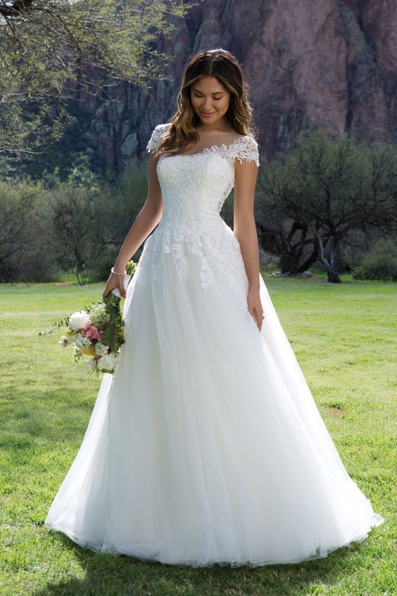 Simple A Line Lace Appliques Wedding Dress Bridal Gown