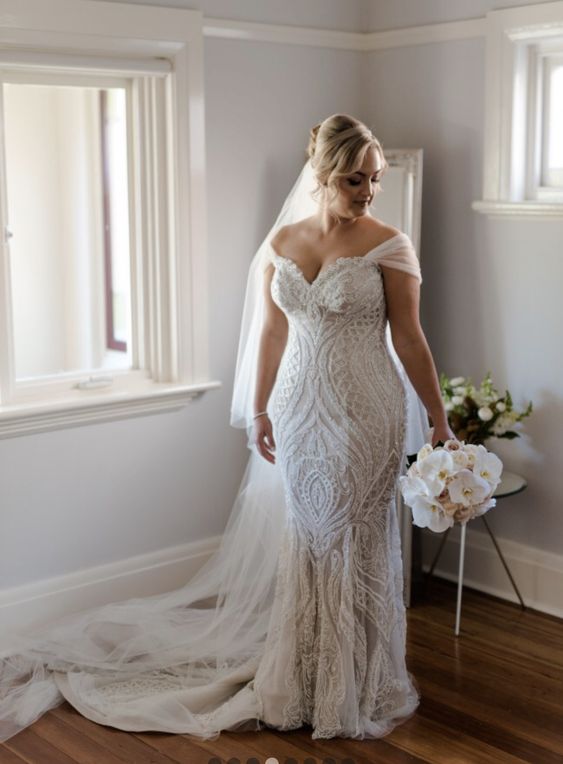 Plus Size Lace Sheath Wedding Dress Bridal Gown