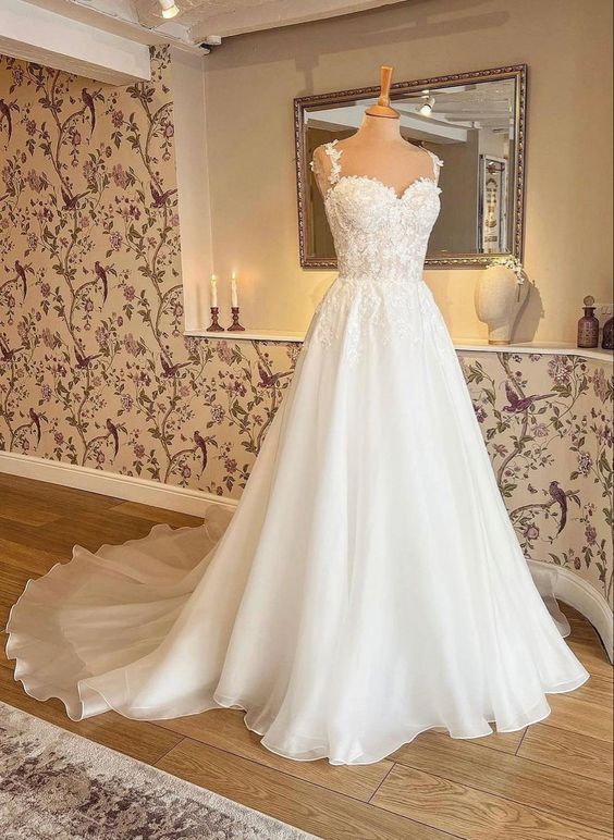 Elegant A Line Lace Appliques Wedding Dress Bridal Gown