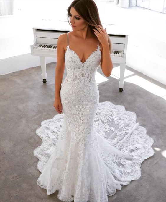 Elegant Mermaid Lace Sleeveless Wedding Dress Bridal Gown