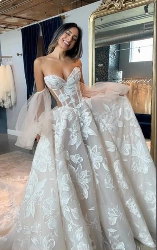 Elegant Ball Gown Lace Sleeveless Wedding Dress Bridal Gown