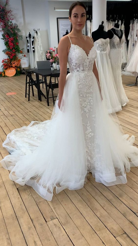 Elegant Mermaid Lace Appliques with Detachable Train Wedding Dress Bridal Gown