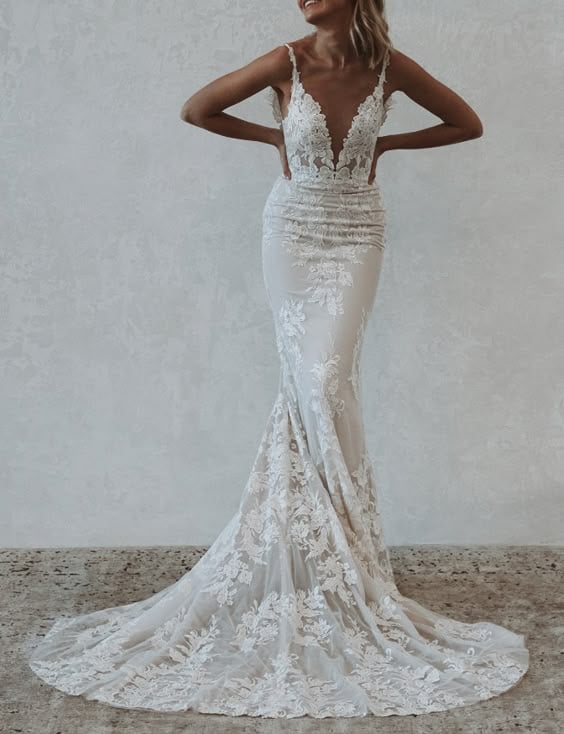 Elegant Sheath Sleeveless Lace Appliques Wedding Dress Bridal Gown