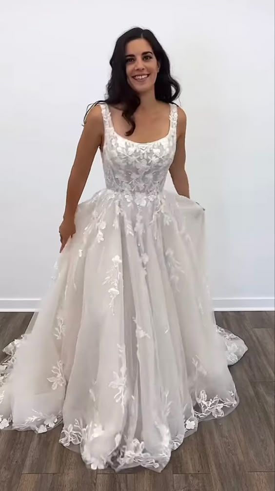 Elegant Ball Gown Scoop Sleeveless Lace Appliques Wedding Dress Bridal Gown