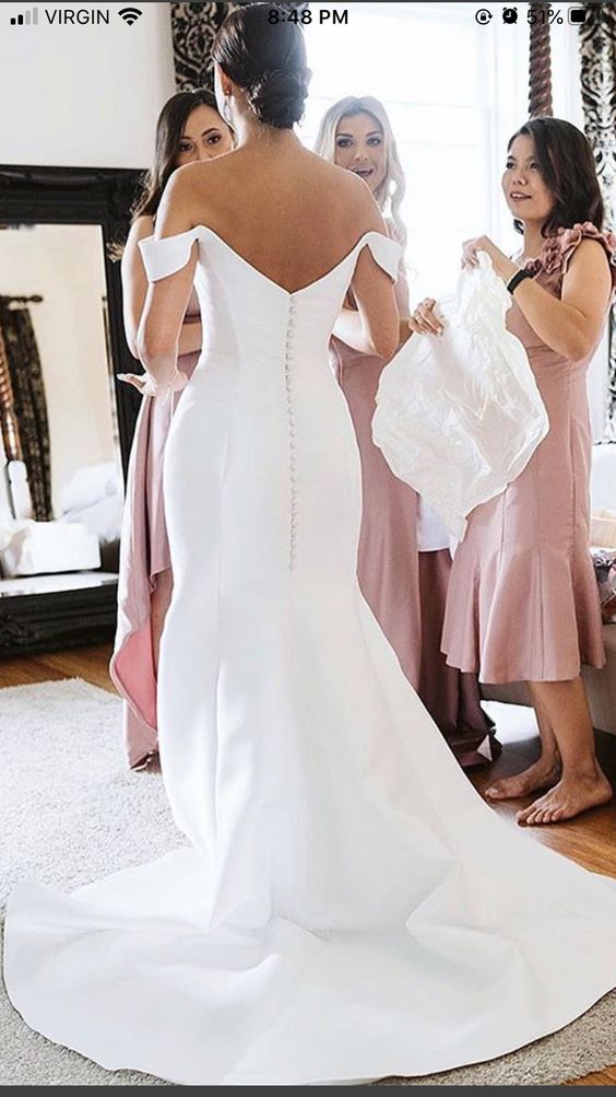 Elegant Off the Shoulder Sleeveless Simple Wedding Dress Bridal Gown