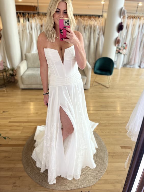Elegant A Line Simple Side Slit Wedding Dress Bridal Gown