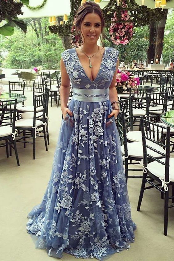 Simple Mother of Bride/ Groom Dress Blue Appliques Evening Formal Gowns Prom Dress