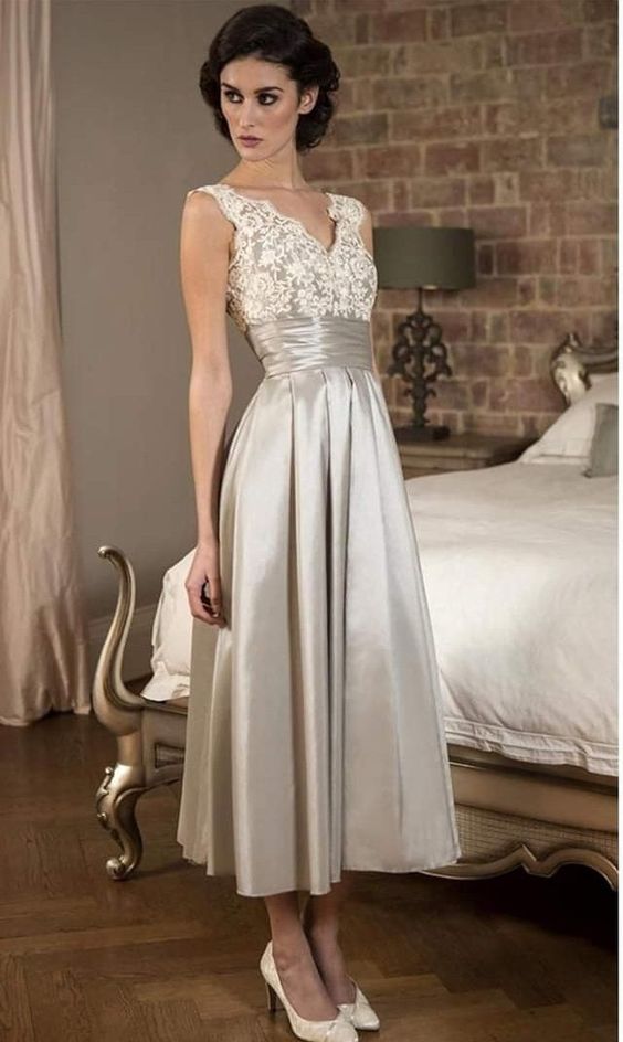 Elegant Mother of Bride/ Groom Dress Lace Tea-length Evening Formal Gowns Prom Dress