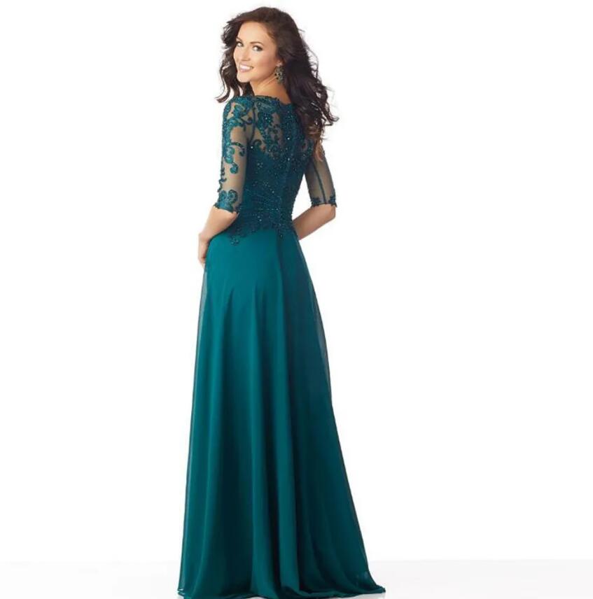 Green Mother of the Bride/ Groom Dresses O-neck A-line Half Sleeves Chiffon Appliques Beaded Party Wedding Evening Prom Gowns