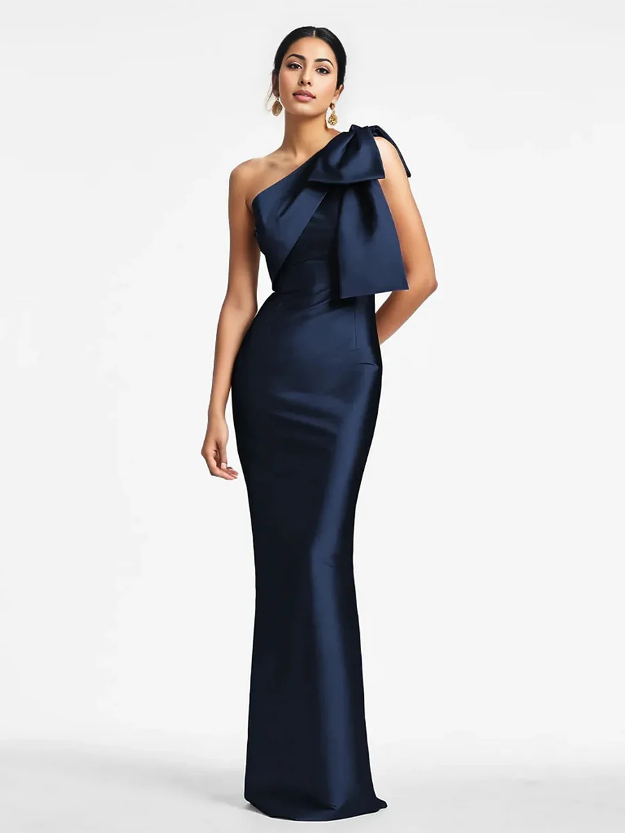 Mother of the Bride/Groom Dresses One-Shoulder Sleeveless Mermaid Bows Floor-Length Wedding Guest Dresses