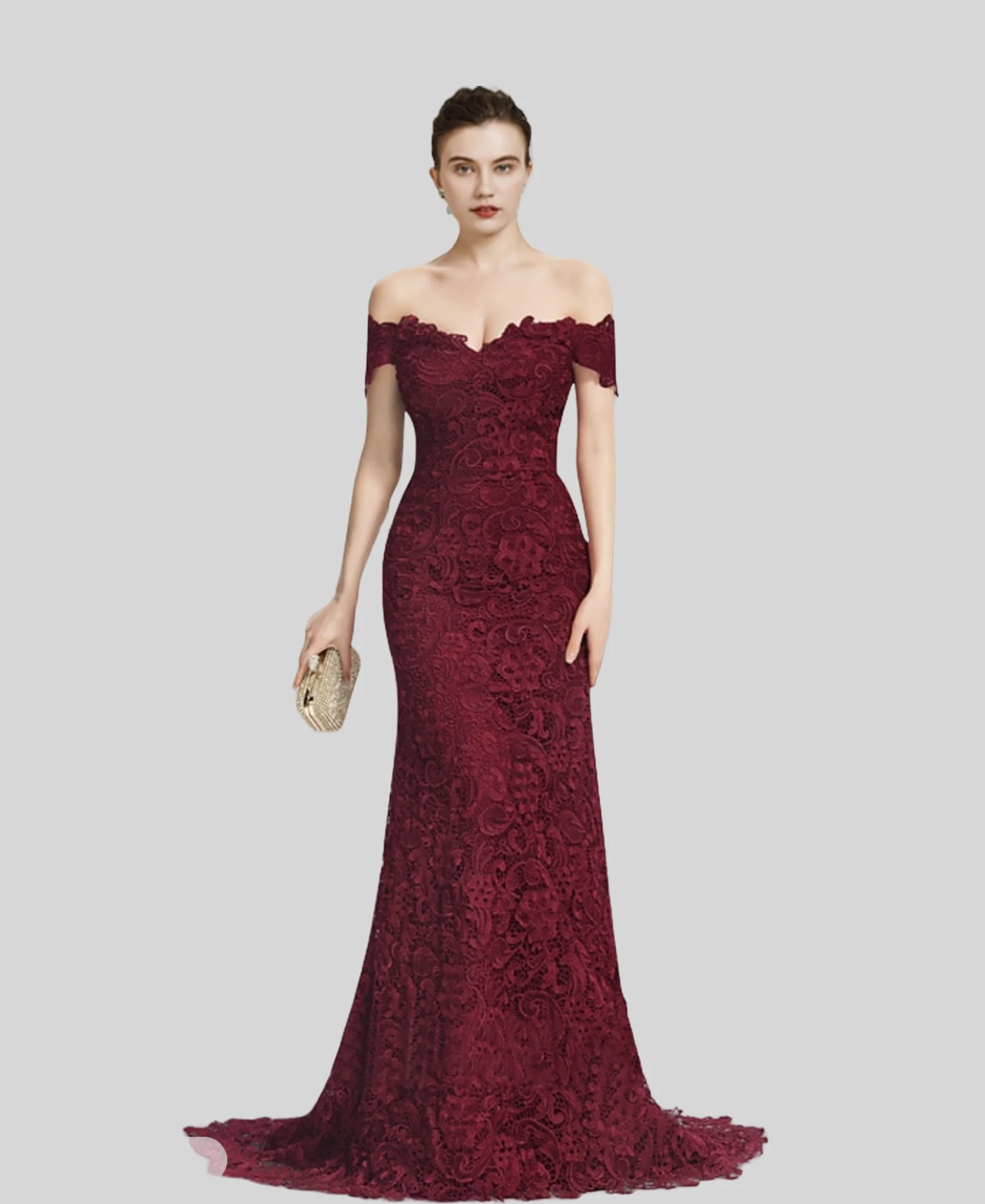 Mermaid / Trumpet Mother of the Bride/ Groom Dress Luxurious Elegant V Neck Court Train Lace Stretch Chiffon 3/4 Length Sleeve