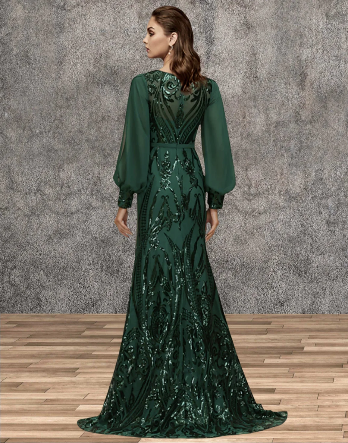 Mermaid / Trumpet Mother of the Bride /Groom Dress Wedding Guest Elegant Sparkle Chiffon Sequined Long Sleeve with Sequin