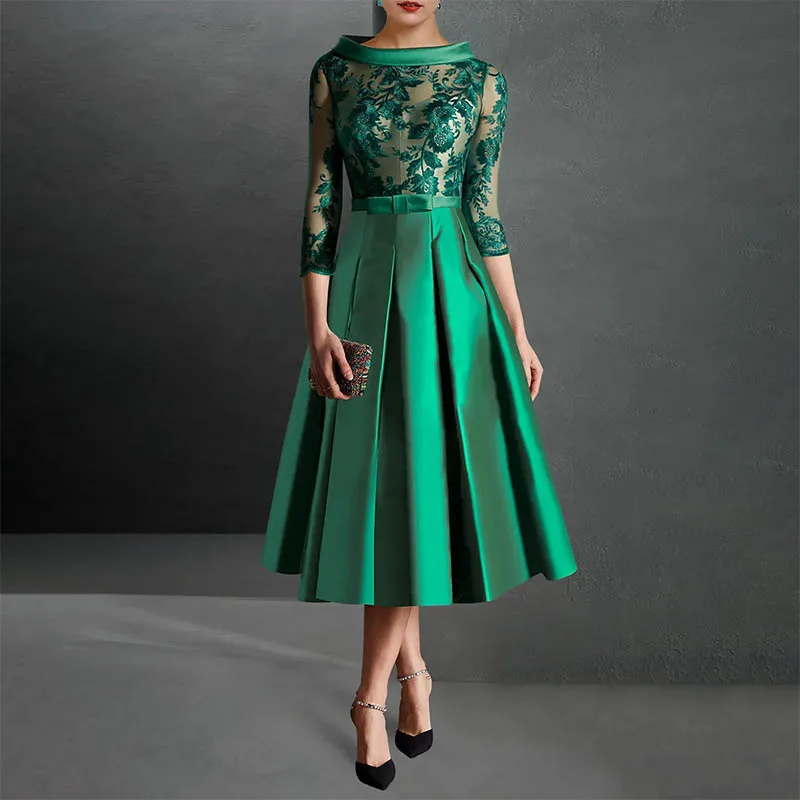 Elegant Green A-Line Pleats Appliques Mother of the Bride/Groom Dress Wedding Guest Prom Formal Occasion