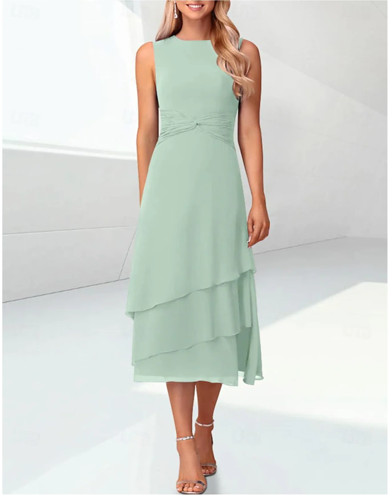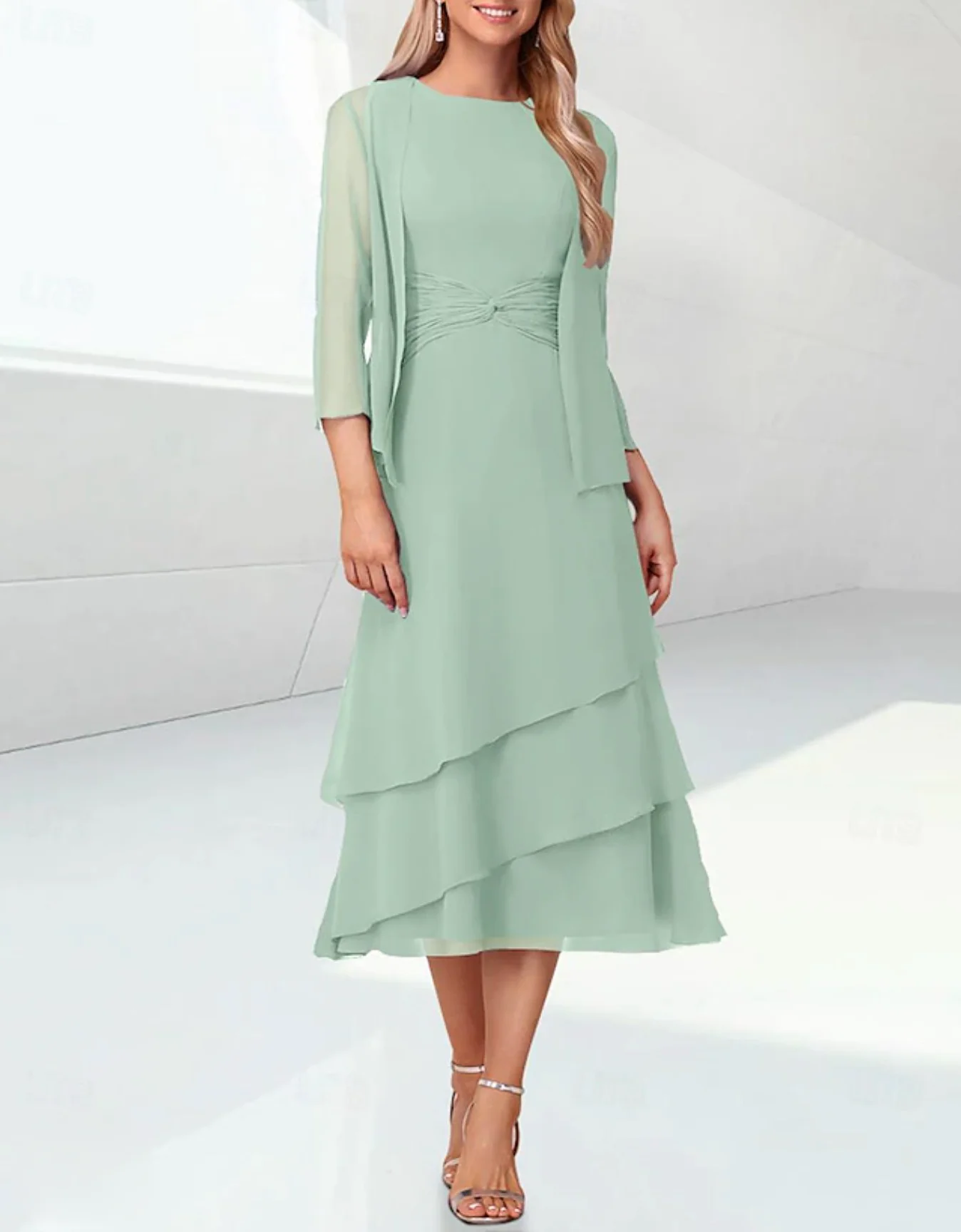 Mother of the Bride/Groom Dress Elegant Tea Length Chiffon 3/4 Length Sleeve Wrap Included with Ruching