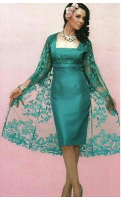 Green Sheath Mother of the Bride/Groom Dress Simple Lace Tea-length Evening Formal Wedding Guest