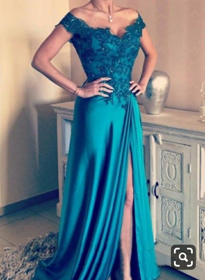 Elegant Blue Mother of the Bride/Groom Dress Lace Appliques Side Slit Evening Formal Prom Dress