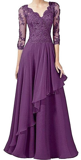 Elegant Mother of the Bride/Groom Dress Purple Lace Half Sleeve Evening Formal Prom Dress