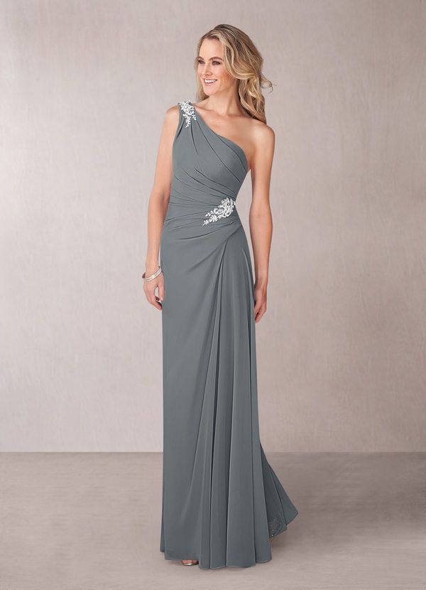 Elegant Mother of the Bride/Groom Dress Grey One Shoulder Evening Formal Prom Dress