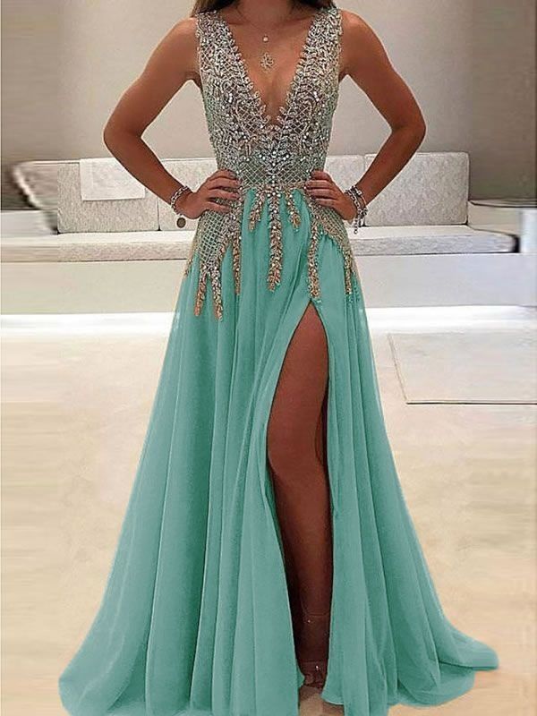 Elegant Mother of the Bride/Groom Dress Green Beading Crystals Evening Formal Prom Dress