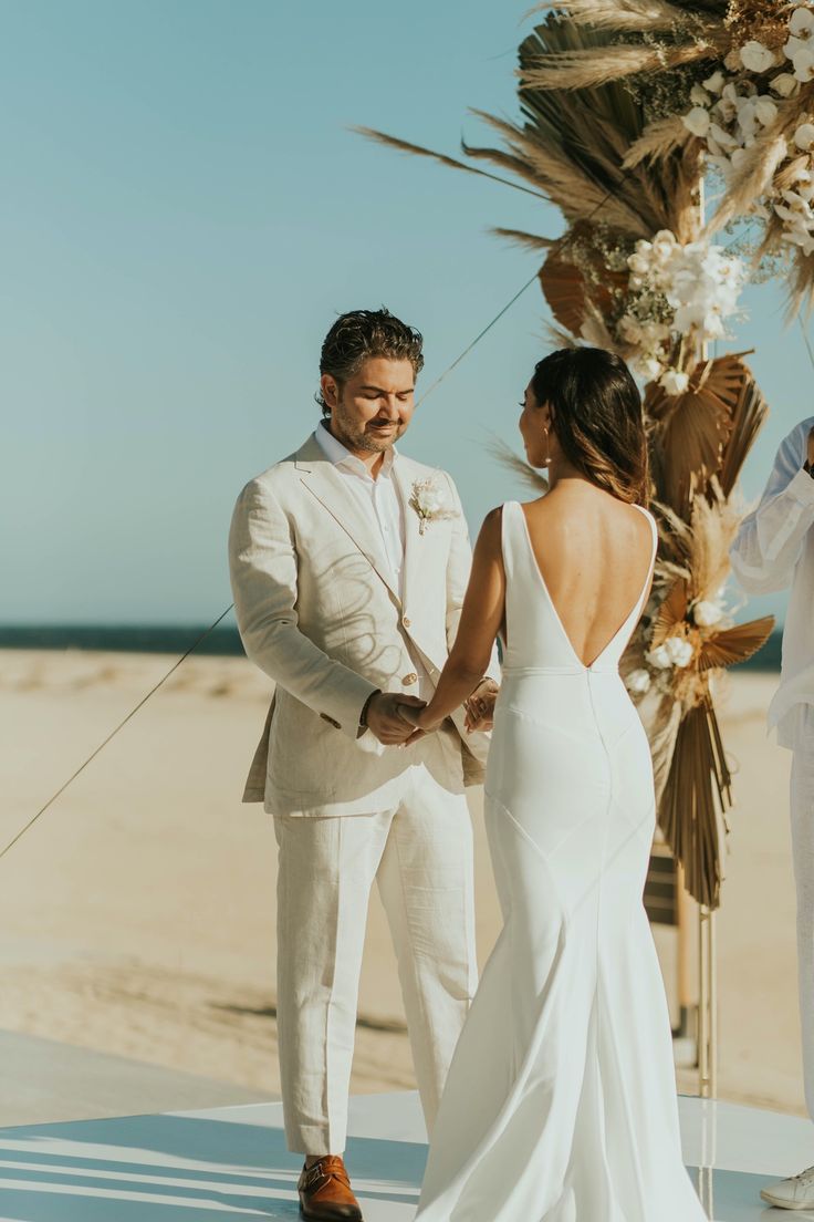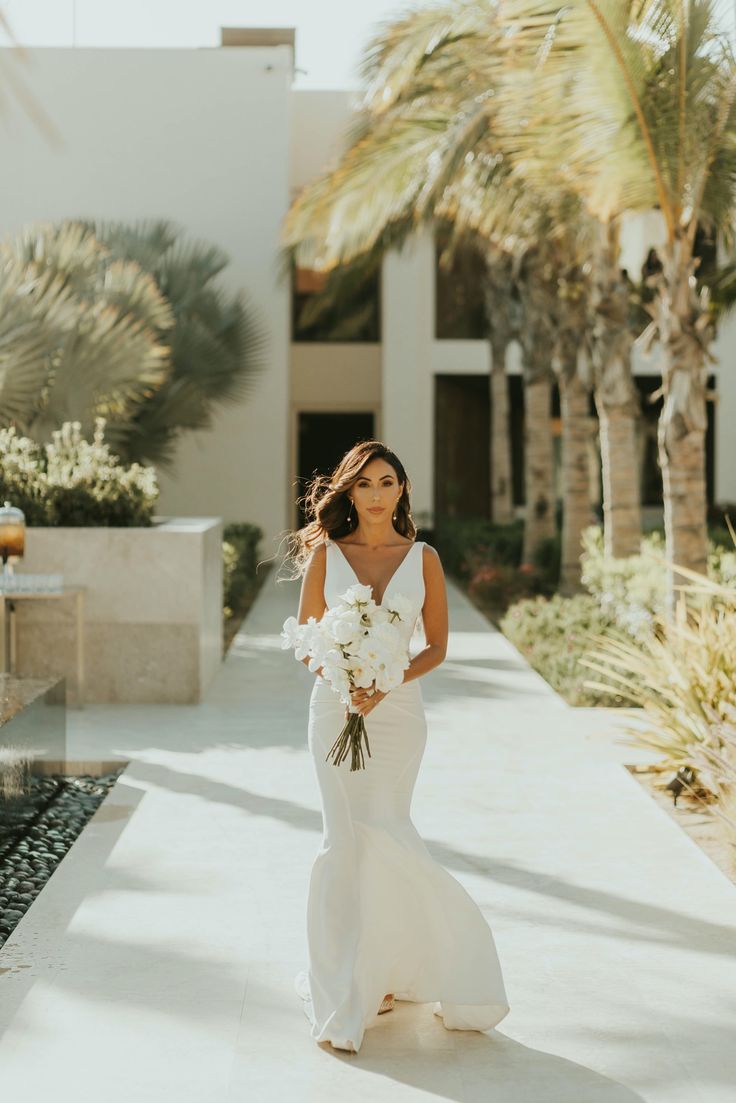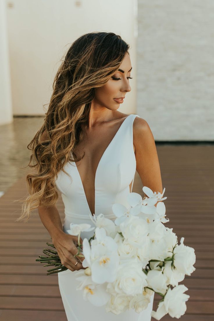 Sheath Satin Wedding Dress, Deep V-neck Wedding Dress, Open Back Wedding Gown