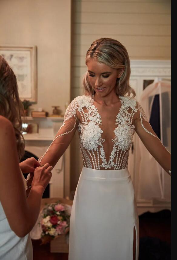 Sheath Sexy Wedding Dress, Sheer Bodice Wedding Dress Wedding Gown