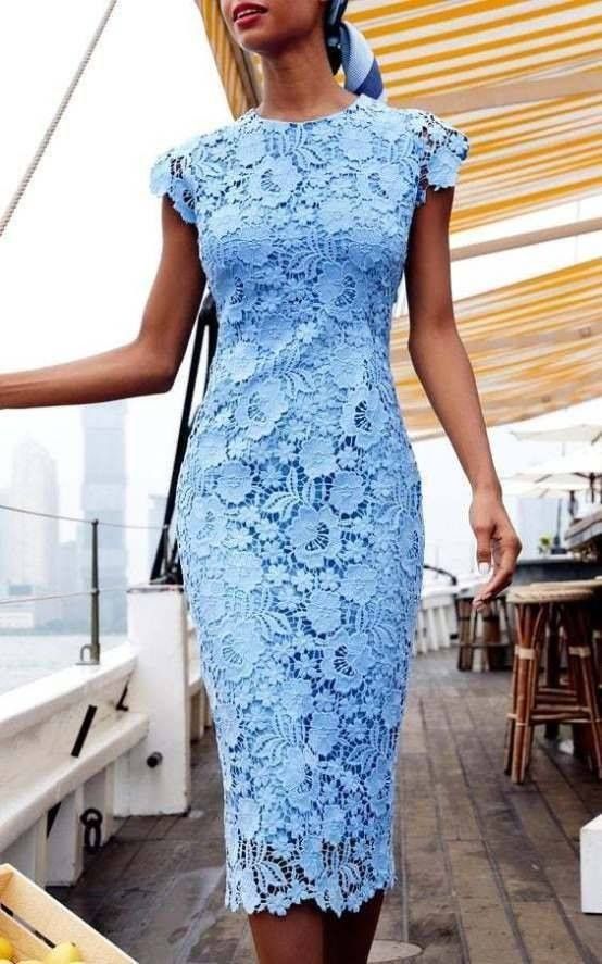 Elegant Mother of the Bride/Groom Dress Blue Tea-length Lace Evening Formal Prom Dress
