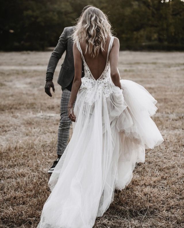 Sexy A-line Deep V-neck Wedding Dress, Appliques Tulle Wedding Gown Bridal Dress