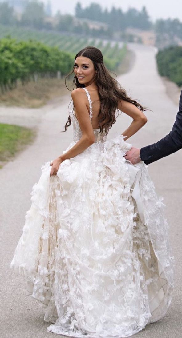 Sexy A-line Appliques Wedding Dress, Open Back Appliques Wedding Gown Bridal Dress