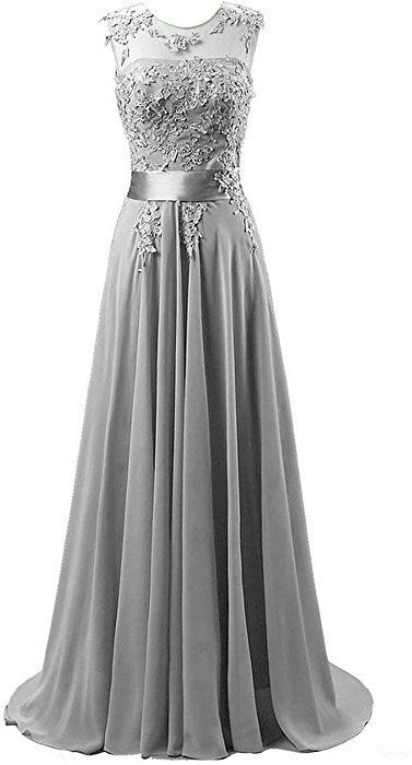 Elegant Mother of the Bride/Groom Dress Grey Lace A Line Evening Formal Prom Dress