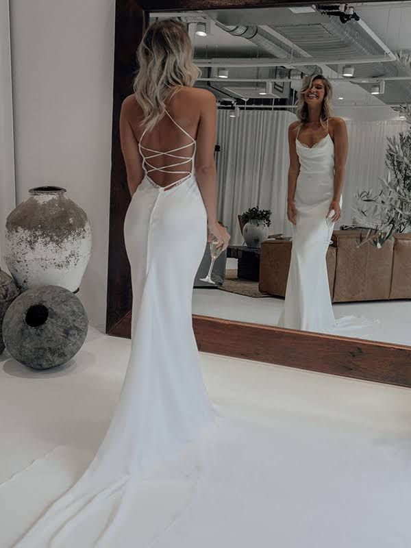 Sexy Sheath Wedding Dress, Crisscross Back Wedding Gown Bridal Dress