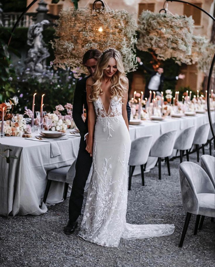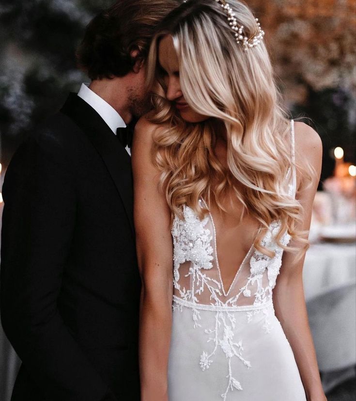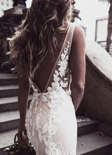 Sexy Deep V-neck Wedding Dress, Appliques Backless Tulle Bridal Dress Wedding Gown