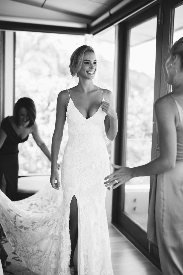 Sexy Deep V-neck Wedding Dress, Lace Bridal Dress Wedding Gown