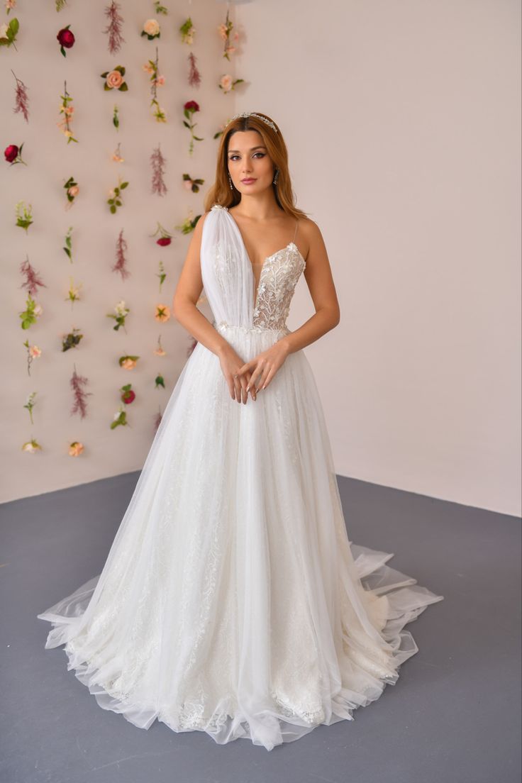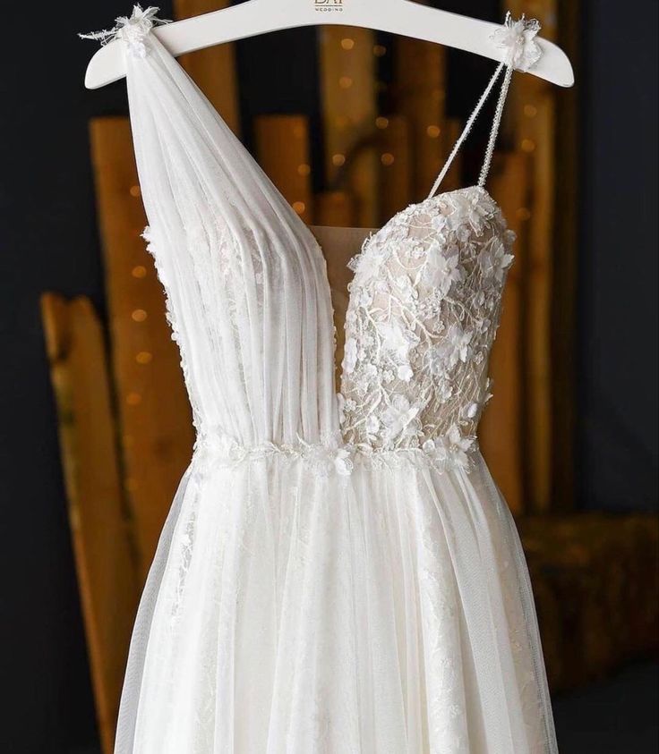 Sexy Deep V-neck Wedding Dress, Appliques Bodice Tulle Bridal Dress Wedding Gown