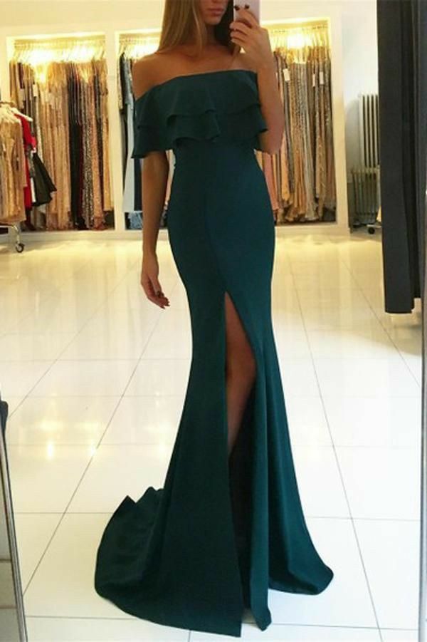 Elegant Mother of the Bride/Groom Dress Green Side Slit Evening Formal Prom Dress