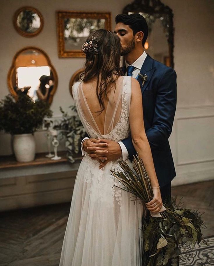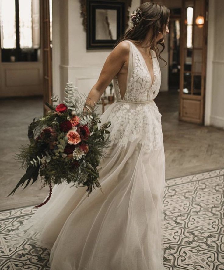 Sexy Deep V-neck Wedding Dress, Appliques Tulle Bridal Dress Wedding Gown