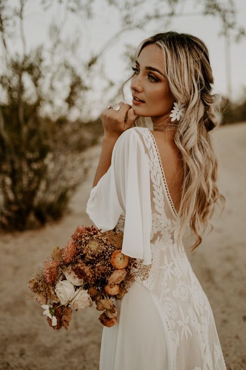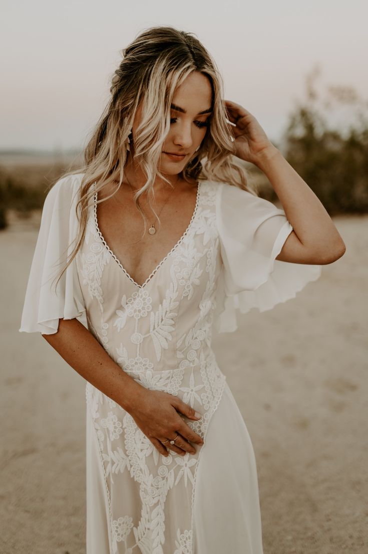 Boho Sexy Wedding Dress, V-neck Bridal Dress Wedding Gown