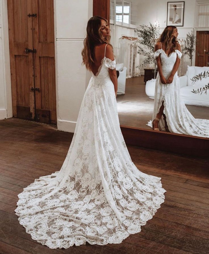 Off Shoulder Sexy Wedding Dress, Lace Bridal Dress Wedding Gown