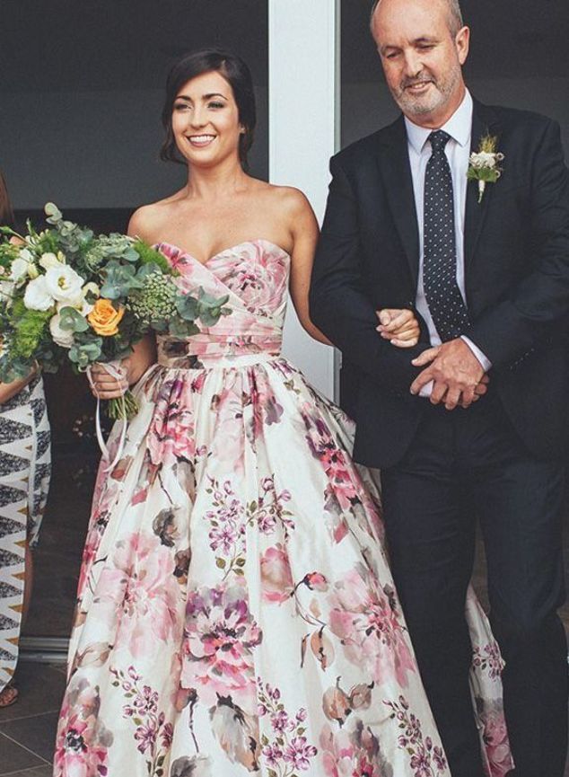 Sexy A-line Wedding Dress, Sweetheart Floral Bridal Dress Wedding Gown