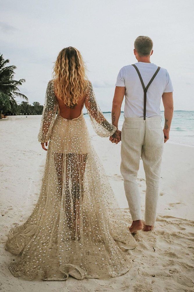 Sexy A-line Long Sleeves Wedding Dress, Sparkle Luxury Bridal Dress Wedding Gown